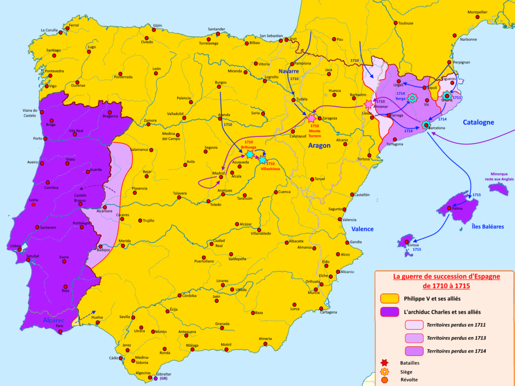 https://fr.wikipedia.org/wiki/Guerre_de_Succession_d%27Espagne (la guerre en Espagne)